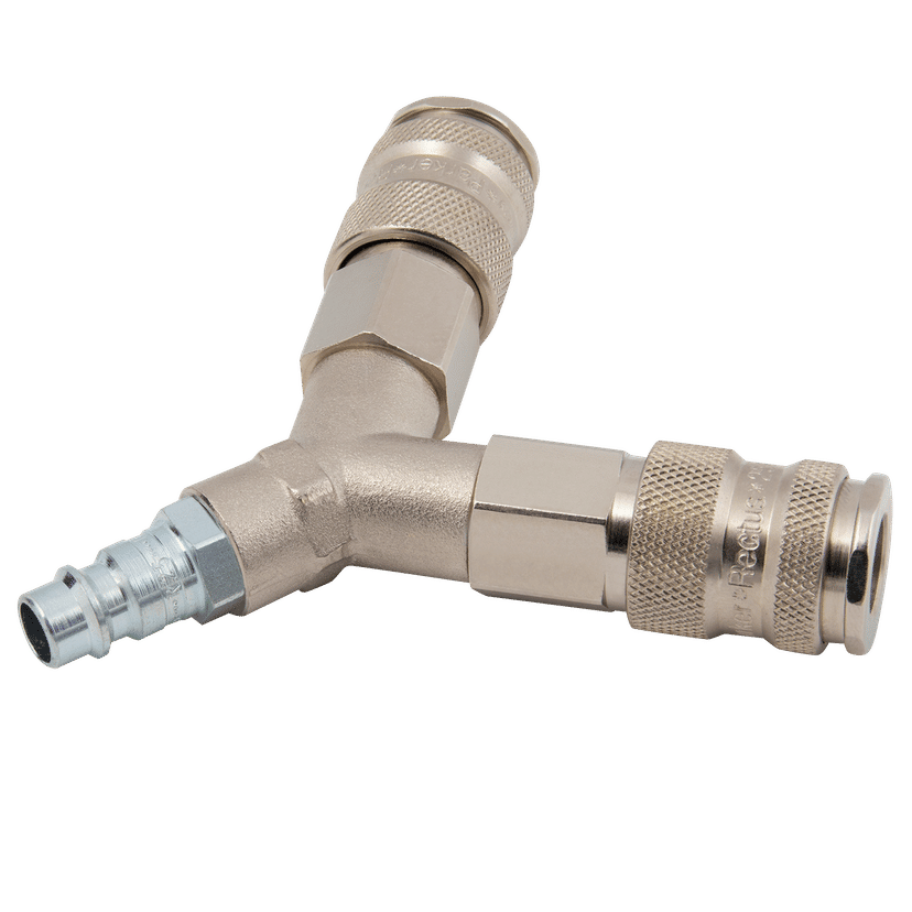 Pneumatic Quick Release, Connectors, Y, Series 25KA, Standard, Parker Rectus, Brass Nickel Plated, Valved, -20°C to +60°C, 35, Parker Rectus