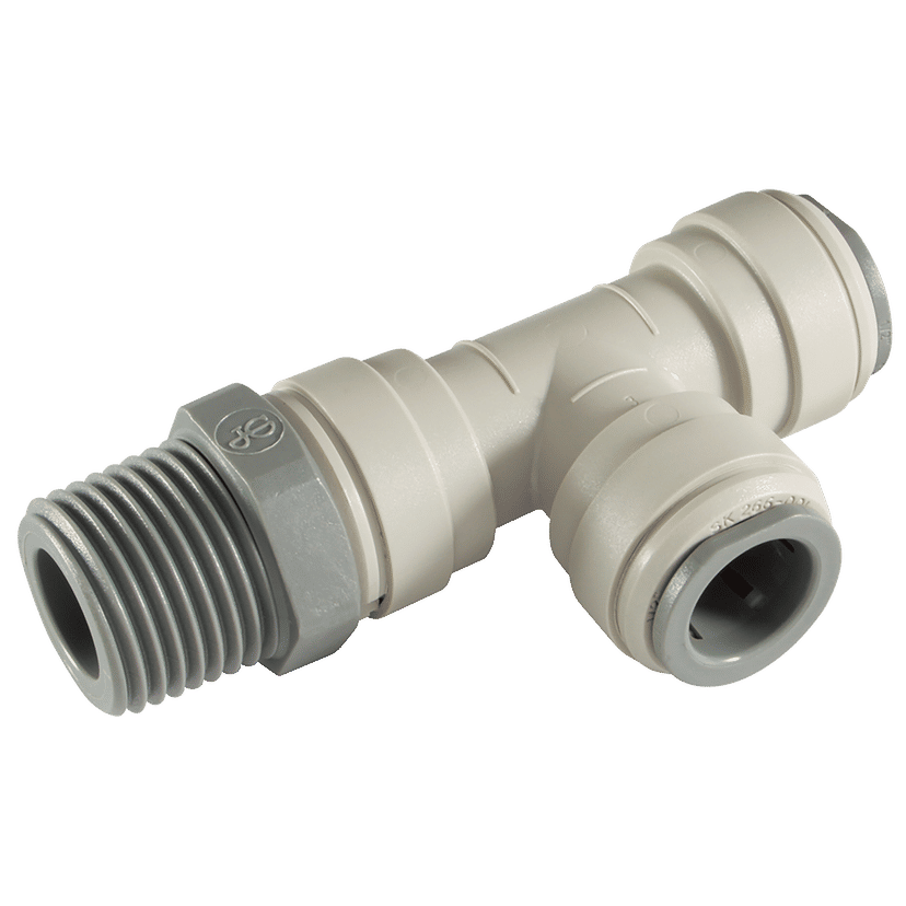 1/4" BSP Taper Male x 1/4" Outside Diameter, Tee, Push Fitting, Plastic, Working Temperature 0°C to +23°C, Maximum Working Pressure 16 bar, John Guest Huge Savings! Available for a limited time - while stock lasts