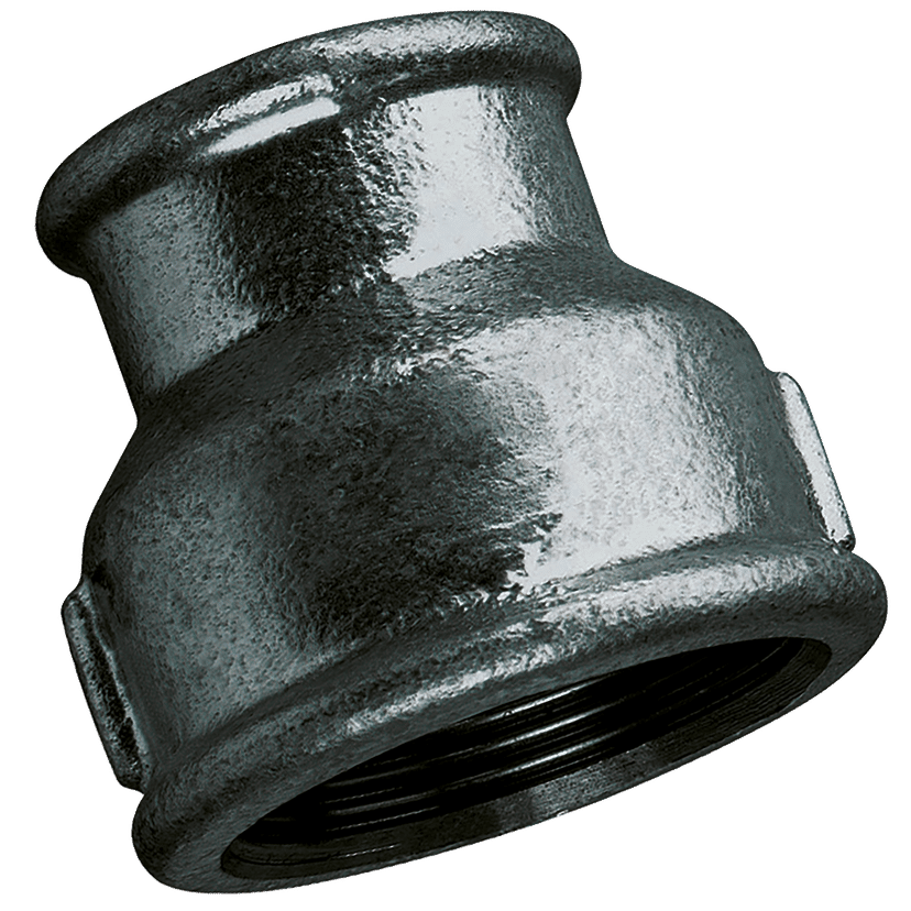 1" BSP Parallel Female x 3/4" BSP Parallel Female, Malleable Iron Pipe Fitting, Black, Reducing Socket, Fig. 240, Maximum Working Temperature 200°C, Maximum Working Pressure 16 bar, FT Pro