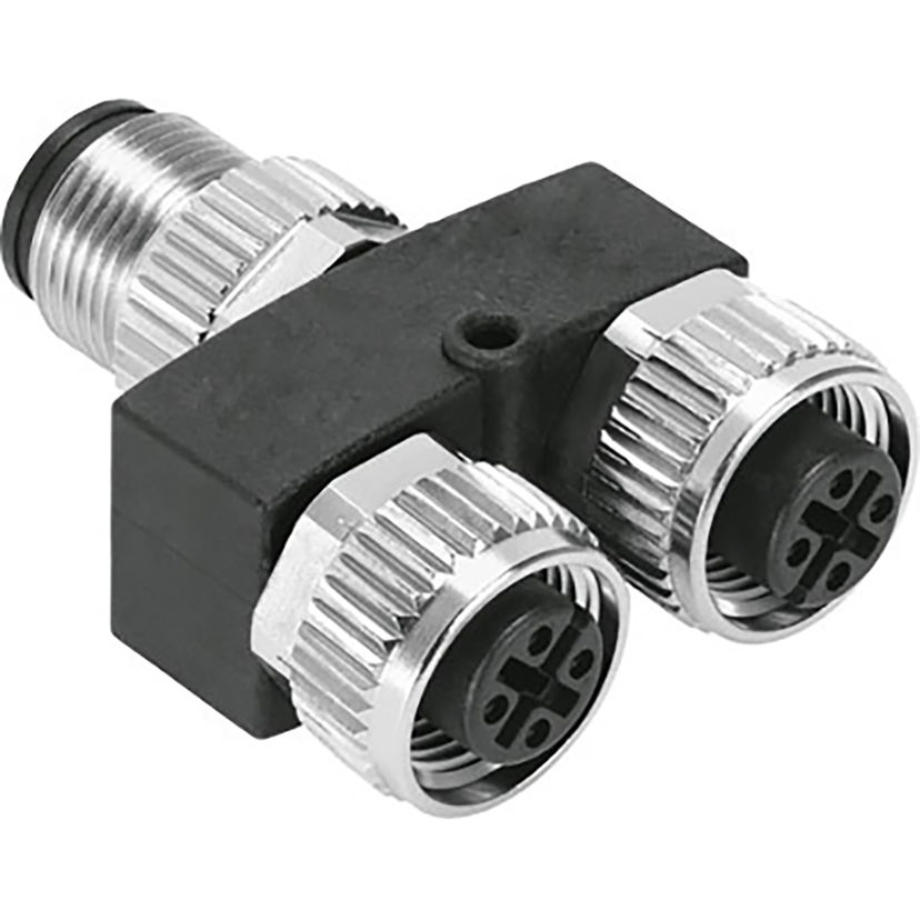 Distributor Nedy-L2R1-V1-M12G5-N-M12G4 Based On the Standard=En 61076-2-101, Design Structure=Y-Distributor without Cable, Distributor Type=2 to 1, Cable Identification=Without Inscription Label Holder, Mounting Type=(* with Through-Hole for M2 Screw, * with Accessories), Festo