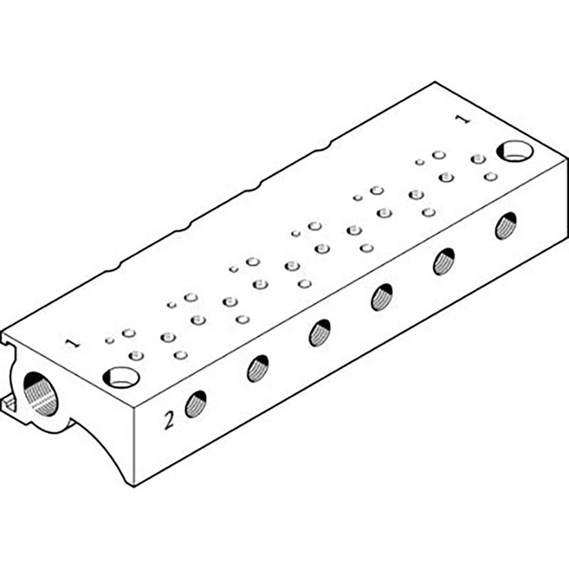 Manifold Block Mha1-P2-2-M3 for Manifold Block Valves Mha1-...-Hc/Tc Max. Number of Valve Positions=2, Operating Pressure=0 - 8 bar, Operating Medium=Compressed Air In Accordance with Iso8573-1:2010 [7:4:4], Note On Operating and Pilot Medium=Lubricated Operation Possible (Subsequently Required for Further Operation), Corrosion Resistance Classification Crc=1 - Low Corrosion Stress, Festo